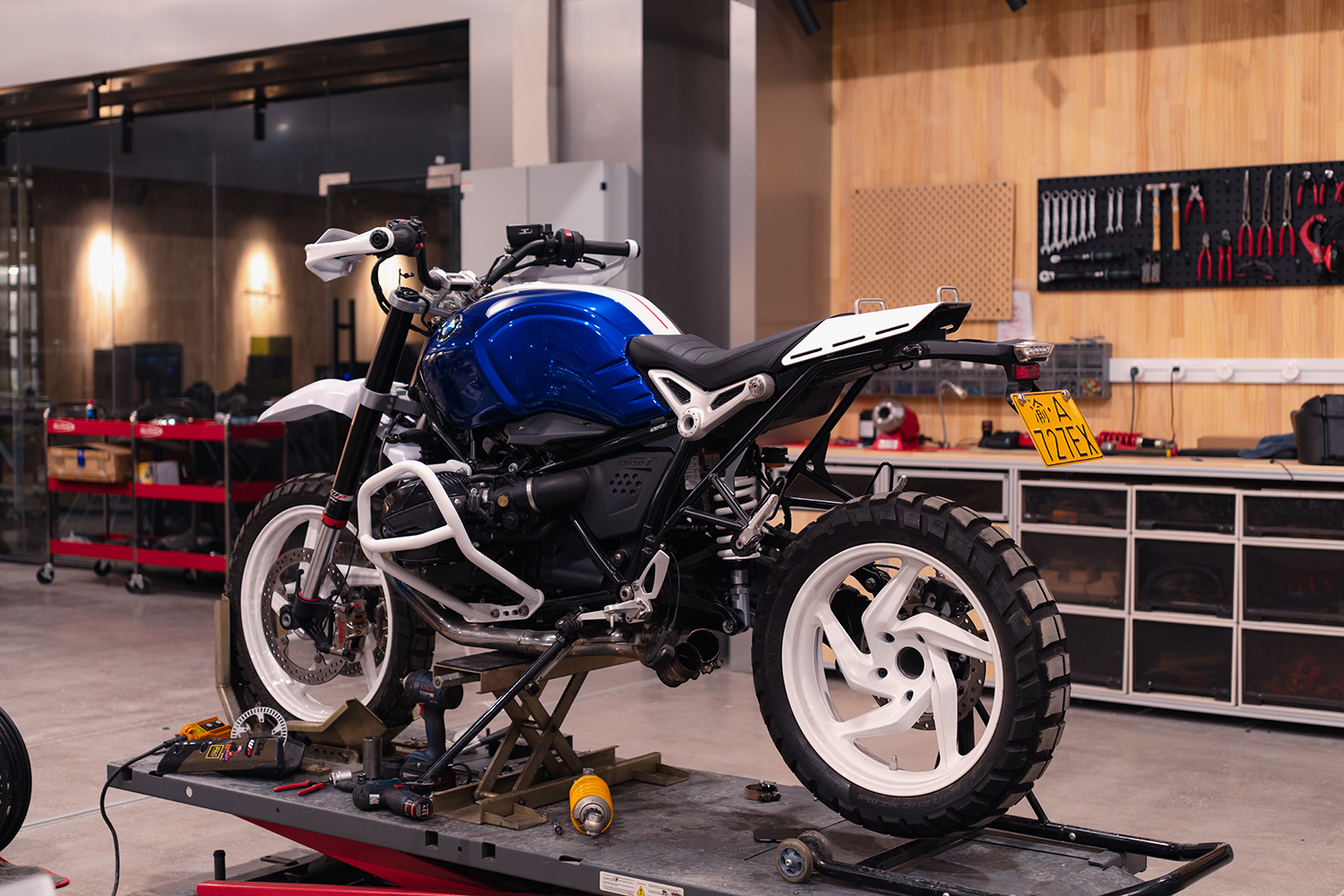 As part of the ShawnStudio RnineT Super G/S project, this luggage rack is an indispensable component in achieving the rugged off-road style of the RnineT. The overall design employs numerous straight lines, crafted from 6061-T6 aluminum with CNC machining to create beveled edges that protect both the rider and passenger. A custom curved mold is finally used to achieve smooth transitions.